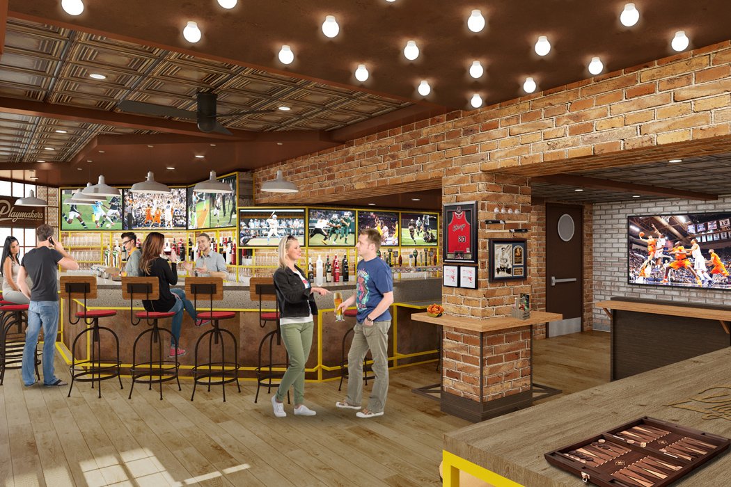 - Playmakers Sports Bar & Arcade, featuring live sports on TV